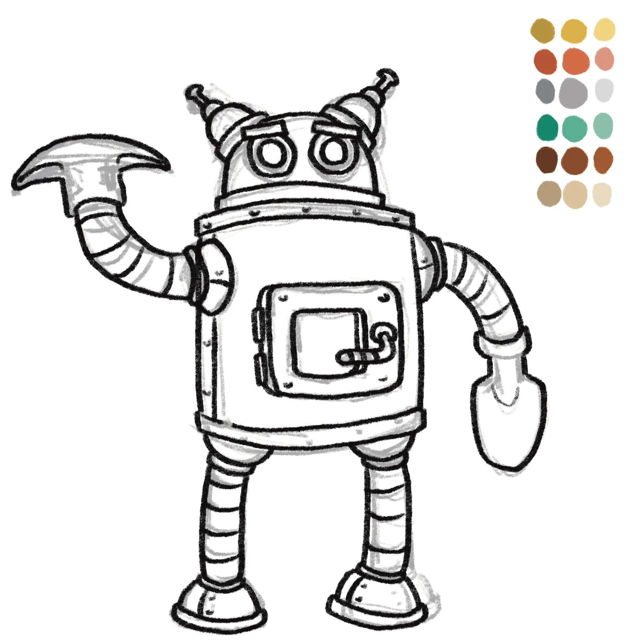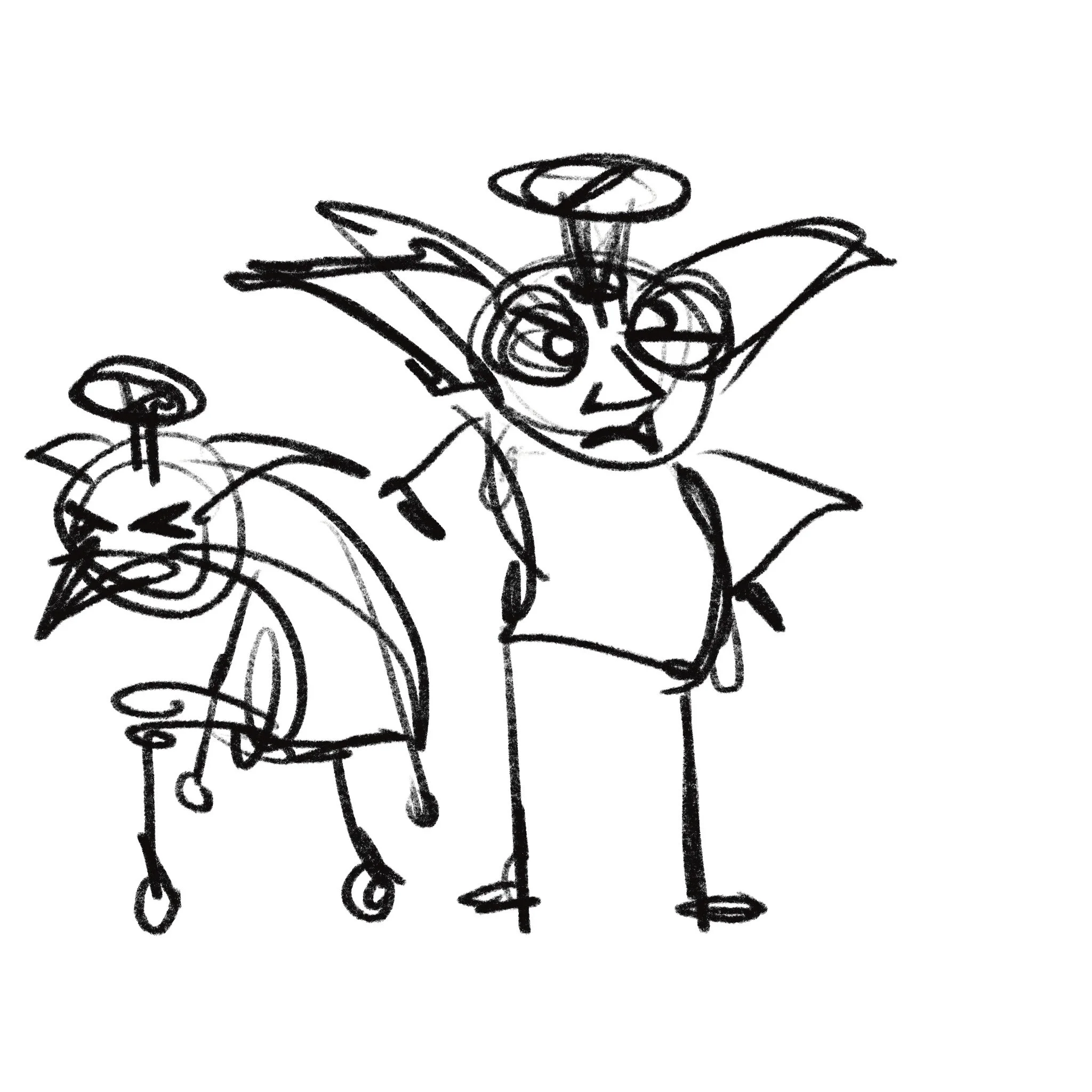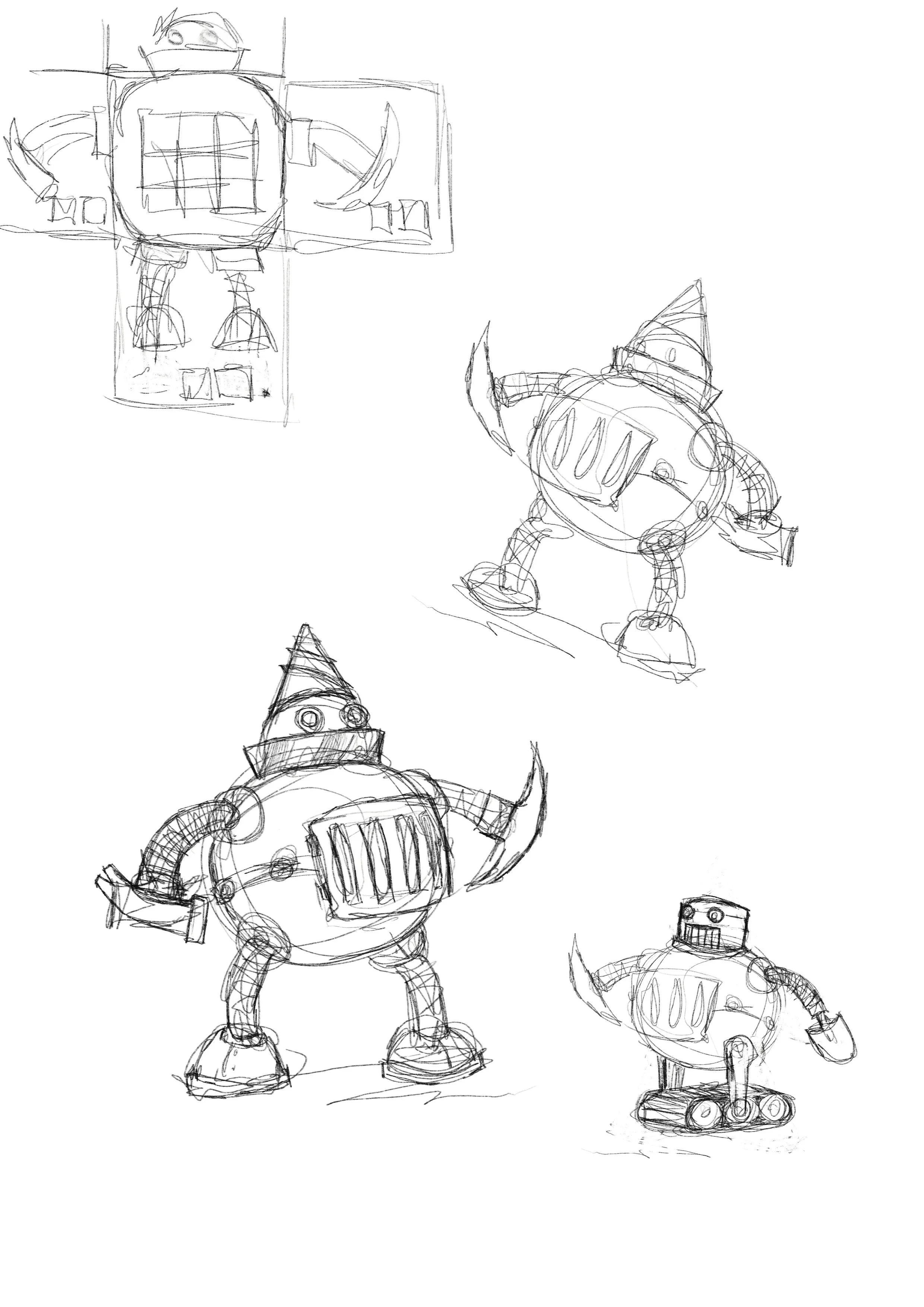 Brainstorming & concept drawings for character designs for a Personal Board Game Project “Gnomebots & Knoblins”